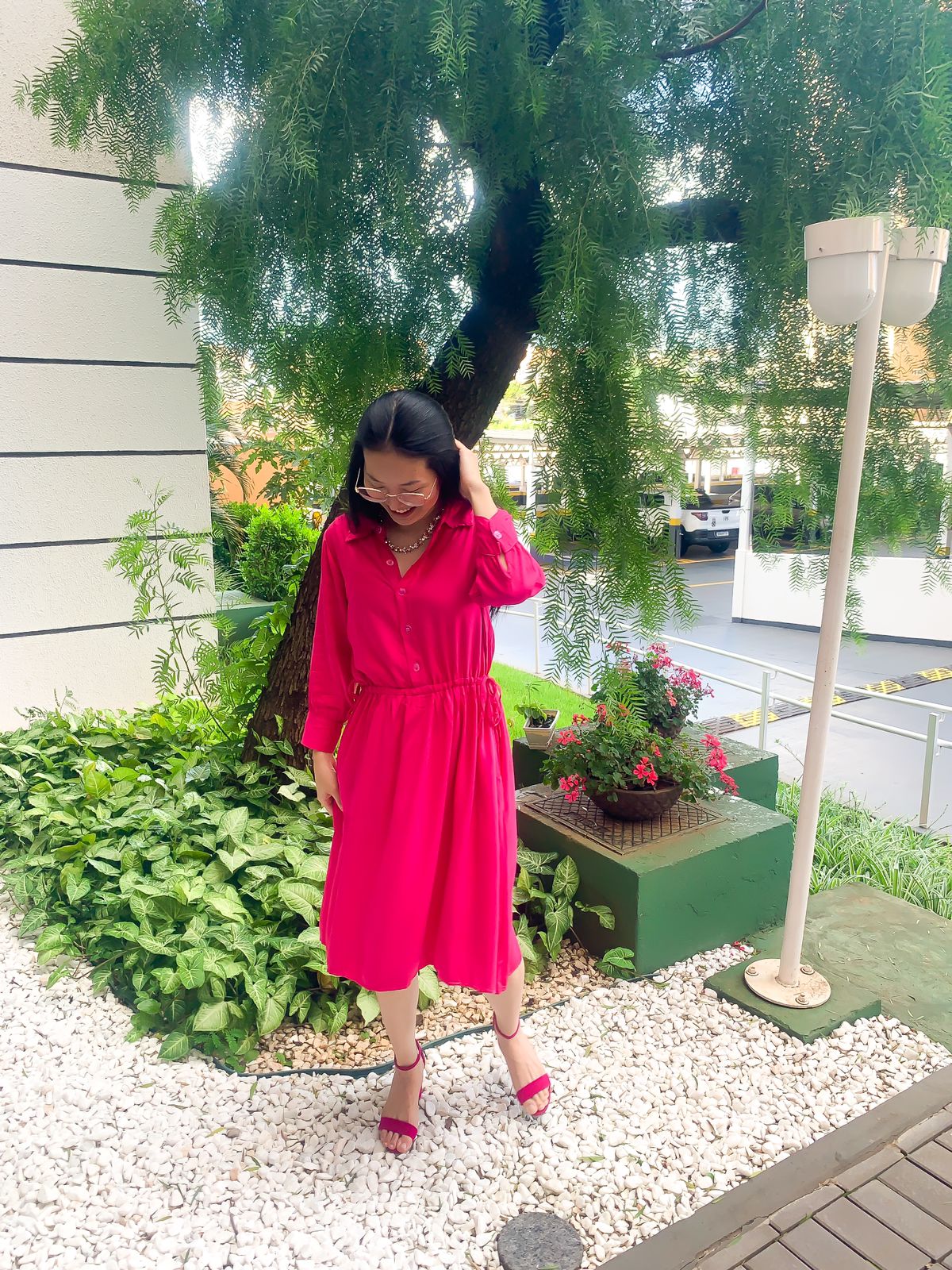 Um vestido encantador, leve, fresco, tecido muito gostoso, com botões funcionais, regulagem na cintura, bolsos laterais.