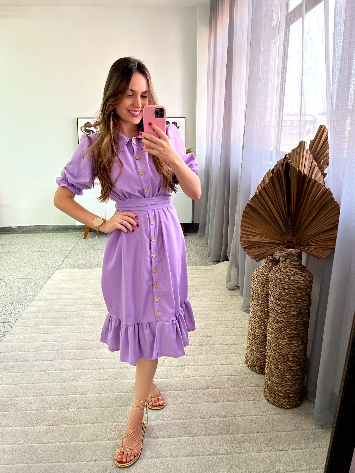 MODELO: VESTIDO MIDI COM MANGA BUFANTE E ELÁSTICO, CINTO ACOMPANHA (USO OPCIONAL).